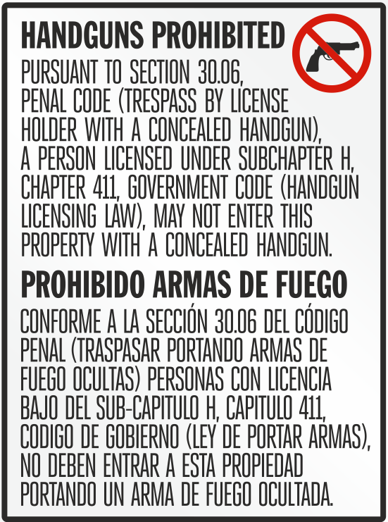 - 30.06 (Restricts LTC Concealed Carry): A 30.06 sign restricts LTC holders from carrying concealed on that property. Permitless carriers are not affected by a 30.06 sign posted alone. That is the flip side of the 30.05 advantage. Signs cut both ways depending on how you carry and what credential you hold.
